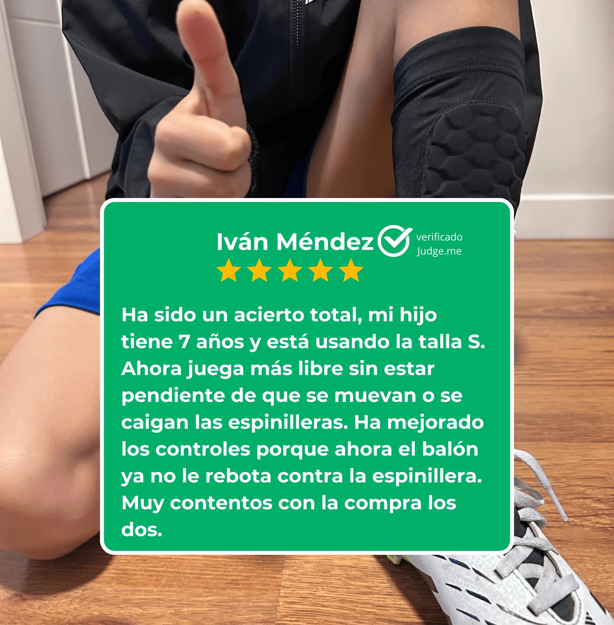 Ha sido un acierto total, mi hijo tiene 7 años y está usando la talla S. Ahora juega más libre sin estar pendiente de que se muevan o se caigan las espinilleras. Ha mejorado los controles porque ahora el balón ya no le rebota contra la espinillera. Muy contentos con la compra los dos.